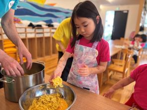 2025-04-23 ブログ ☆☆☆クッキングクラス 今回のThree Stars’ cooking class では、カルボナーラを作りました! フランス人のMaximeが考えてくれたレシピで、パスタはフェットチーネを使い チーズの代わりにクリームチーズを使いできあがり✨ とってもおいしくできあがったので、みんなワクワクでお持ち帰りしました。 < BACK 一覧を見る NEXT >
