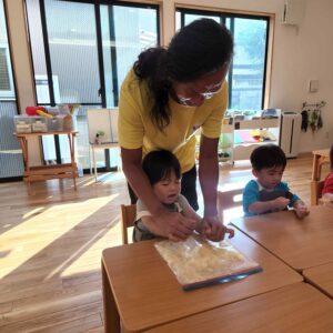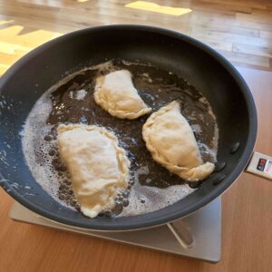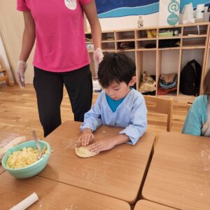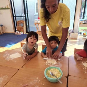2023-10-03 ブログ クッキングでピロシキ作りました! 今回のThree Stars cooking class のレシピは、「ピロシキ」。 先生の母国で、小さいころからよく食べていたそうで、生地から作ってジャガイモもマッシュポテトにして、子どもたちの小さい指で生地のまわりを餃子みたいにとじていき、最後は多めの油で揚げました✨ めちゃくちゃ美味しかったみたいで、ご家庭からの反響もとても良かったです! 子どもたちも頑張ったね☆段々クッキングのクラスも様になってきました。ちゃんと先生のお話をきいて指示どおりにできるようになってきましたよ! < BACK 一覧を見る NEXT >