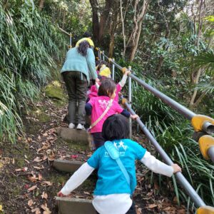 2024-03-16 ブログ 今回の避難訓練は、たぶの木公園の裏山へ 毎月行われる避難訓練。 今月は、いつも子どもたちとよく行く「たぶの木公園」に入り口がある裏山に登り避難してみました。 山の中腹あたりに広場があり、そこが地域の人々の避難場所にもなっています。 石で階段のようなものを作ってありますが、やっぱり子どもたちにとっては少し急なところもありましたが、子どもたちは文句ひとつ言わずみんな一生懸命登っていました。 本当に毎月、「本番」が来ませんようにと祈っています。 < BACK 一覧を見る NEXT >