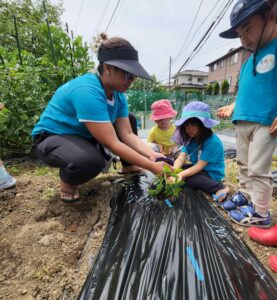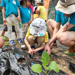 2024-04-19 ブログ 夏野菜の苗と種を植えにスクールの畑へ この頃、雨の日もありますが、順調に気温が上がってきました。 ということで、みんなでスクールの畑に繰り出し、子どもたちがマルチに穴をあけ苗や種を植えてくれました。 今回は、白なす、ミニトマト、ピーマン、サンチュ、そら豆を植え、6月には空心菜の種も植えます! 時々、お野菜の成長をみながら、水やりをしたり、ネットをはったりする作業をまたしに来ます。 元気に大きくなあれ🎵 < BACK 一覧を見る NEXT >