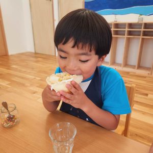 クッキングクラスで子どもたちが作るものは、タッパに入れて持ち帰りおうちで「上手にできたね!」とほめてあげながら一緒に召し上がっていただけます。