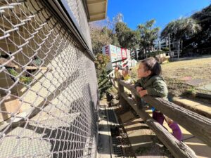 お天気も最高で、お顔とおしりが真っ赤なお猿さんたちや、アヒル、烏骨鶏、モルモットやうさぎもたくさんいて、子どもたちは目をキラキラさせながらかわいい動物たちを眺めていました!