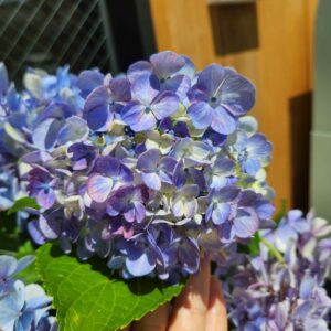 先月、スクールのお隣さんの奥様から「もう今年はこの紫陽花で最後だから~」と、立派できれいな紫陽花をいただきました。