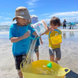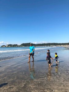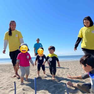 砂を足の裏でつかむ感覚とか体幹を使う感覚とかも自ずと養われると思い、子どもたちにとって、自然の中でたくさん体を動かし遊ぶことで感性を大いに磨いていくことがいかに大切なのかという思いがジョンジョンの思いと重なり、是非スリースターズキッズにも教えてほしいとお願いしました。