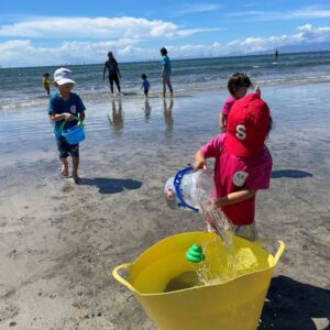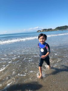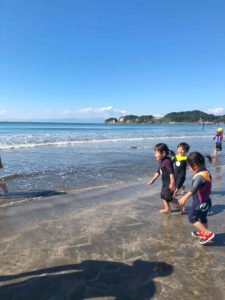 砂を足の裏でつかむ感覚とか体幹を使う感覚とかも自ずと養われると思い、子どもたちにとって、自然の中でたくさん体を動かし遊ぶことで感性を大いに磨いていくことがいかに大切なのかという思いがジョンジョンの思いと重なり、是非スリースターズキッズにも教えてほしいとお願いしました。