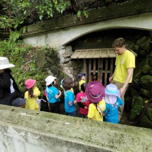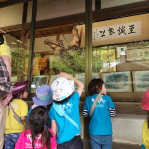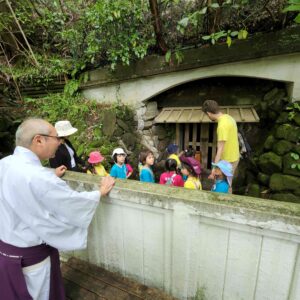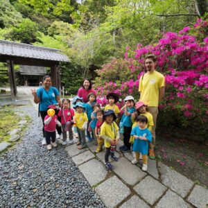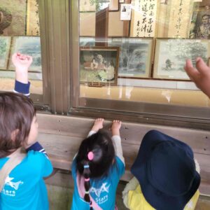 お寺や神社に行き、そのお寺や神社では、何百年前に何があったのかなど、昔のお話をきいたり、神社の境内で遊んだりするクラスになります。