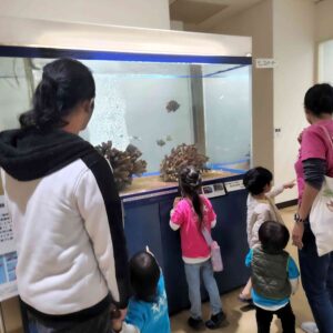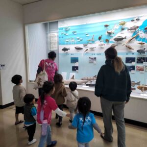 子どもたちは、「これ見たことある!」「これ、めちゃくちゃ大きい!」「きれい!」「こわい!」「食べられちゃうよ」などなど、口々に思ったことを口にしていました。