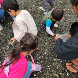 先週のNature Activityのクラスでは、小雨が降ってきてしまったのですが、スクールバスで葉山の御用邸の方までくりだしました!