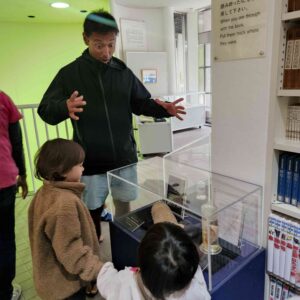 子どもたちは、「これ見たことある!」「これ、めちゃくちゃ大きい!」「きれい!」「こわい!」「食べられちゃうよ」などなど、口々に思ったことを口にしていました。