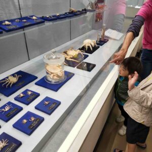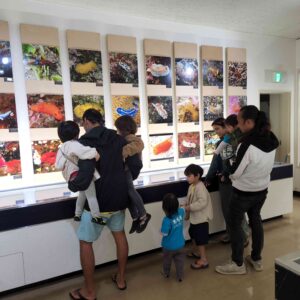 しおさい博物館には、昭和天皇が海洋生物を熱心にご採集され、それらの分類的なご研究をされていた時作られた標本が28点も展示してあるお部屋もあり、昭和天皇ご自身のご採集品を葉山町に御下賜されたということで、相模湾の生物相を知るうえで貴重な文献となっているそうです。その保管の完璧さにびっくりしました。